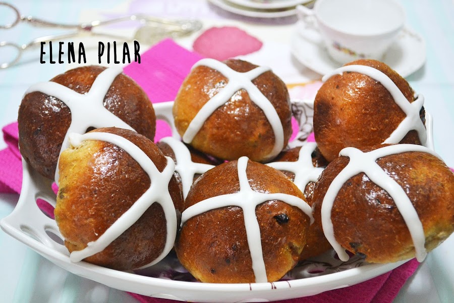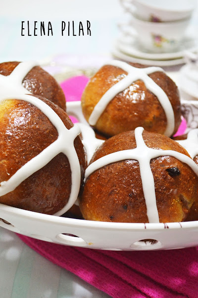 Otro cambio, la cruz. Confieso que la que hice por aquel entonces no acabó de convencerme, ya que se elaboraba con una masa de agua y harina que, tras pasar por el calor del horno, resultaba algo chiclosa. Por eso, lo tenía claro. Si algún día repetía estos bollos, haría la característica cruz de cualquier otro modo que se me ocurriera. Puede que me haya decantado por el método más simple, pero os aseguro que es uno de los más idóneos y efectivos. Un sencillo glaseado espesito de azúcar glas y leche, como el que hacemos para cubrir bizcochos o pasteles, con el que decoré los bollitos una vez fríos y cuando ya habían absorbido todo el glaseado brillante, tan propio también de este dulce.