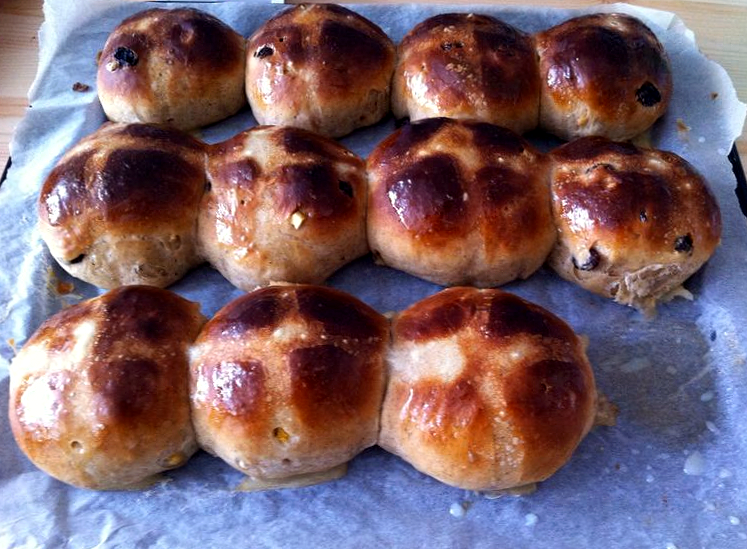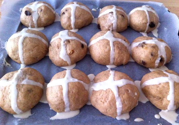 Estos bollitos se caracterizan por tener una cruz de masa en su parte superior, son especiados y contienen pasas y otras frutas deshidratadas. Se comen el Viernes Santo, pero no solo en Reino Unido, también en Australia, Nueva Zelanda, Canadá y Sudáfrica. Por aquí pueden encontrarse en cualquier supermercado, y aunque en estas fechas se vean más, pueden comprarse en cualquier época del año.