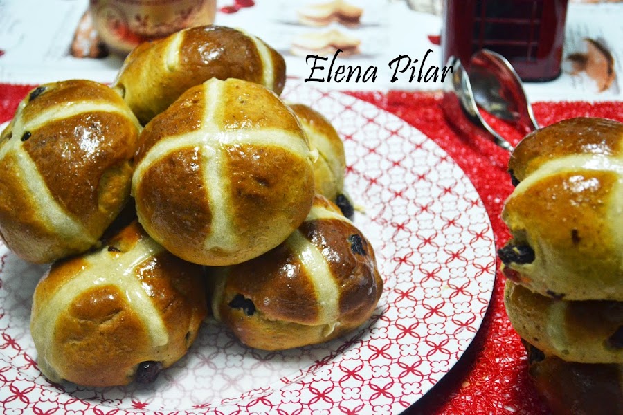 Dije que de este año no pasaba. Y anoche horneé mis primeros hot cross buns, esos bollitos mega esponjosos, con multitud de frutitas secas y pasas, con ralladura de naranja y limón, y mezcla de especias entre la masa. Mmmmmmm...