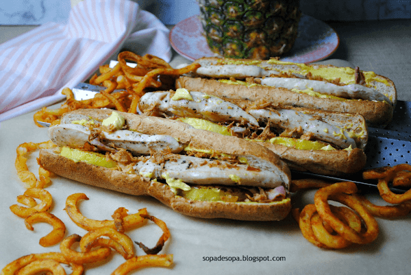 Hot-Dog de pollo con piña