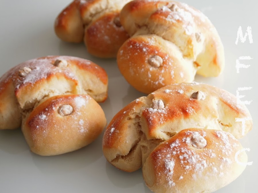 6. Colocar las piezas de masa sobre bandeja de horno forrada de papel, taparlas con un paño y fermentarlas otra media hora. Mientras tanto precalentar el horno a 210ºC con un baño de agua en el interior.