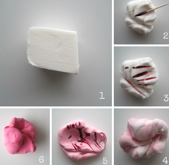 Recuerda que ésta es de fondant, tan solo es tomar una porción y pintar de rosa para dar el tono y la forma al embutido.