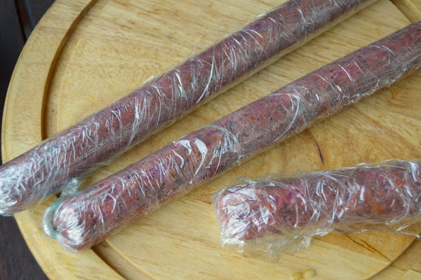 Extender un papel film sobre la encimera y colocar porciones para enrollarlas sobre si mismas y terminar cerrandolas con el film a modo de caramelo, cuanto más compacto mejor.
