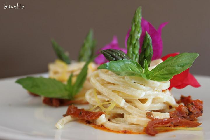 Strangozzi al limón con esparragos y tomates secos en aceite