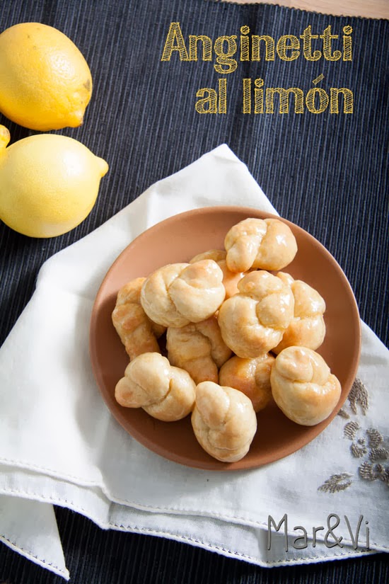 Colocaremos los bollitos en una fuente para horno y llevaremos a horno (precalentado a 180º) durante 15-20 minutos, hasta que los anginetti estén dorados. Mientras tanto, para preparar la cobertura, derretiremos a fuego lento la mantequilla, el azúcar glas, el zumo de limón, el agua y la esencia de vainilla. Mezclamos hasta que se disuelvan bien todos los ingredientes y la mezcla este caliente. Retiraremos los dulces del horno y aún calientes echaremos por encima la cobertura. Dejaremos enfriar bien.