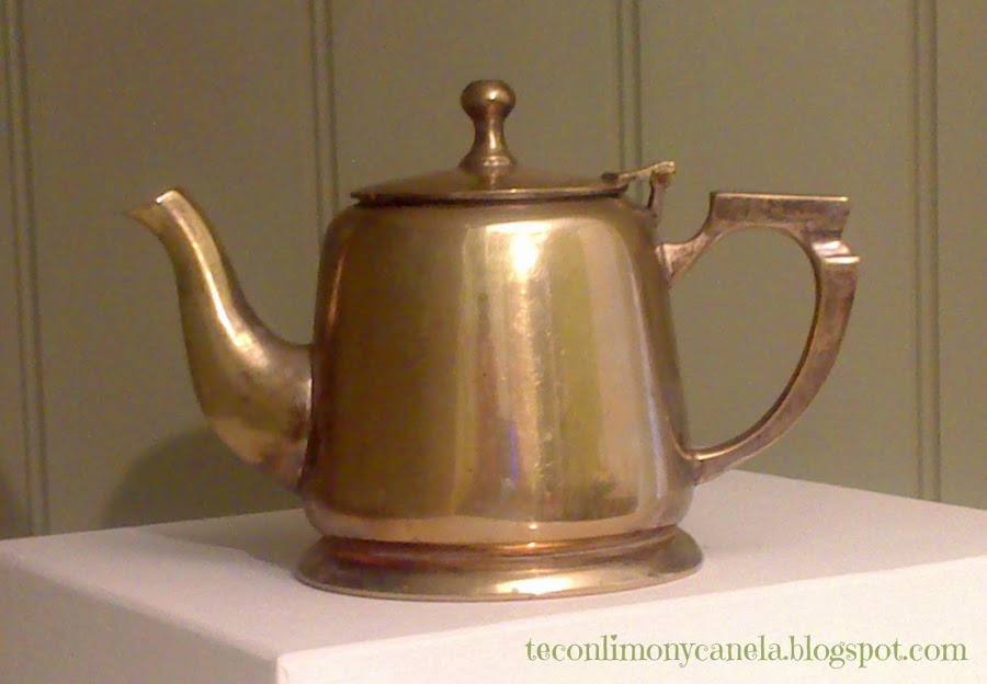 Esta tetera la compré en un mercadillo de segunda mano, en la Costa del Sol, donde muchos ingleses venden sus juegos de té, cucharillas, coladores y todo tipo de parafernalia en torno al momento del té y que a los amantes de esa bebida nos vuelve locos...
