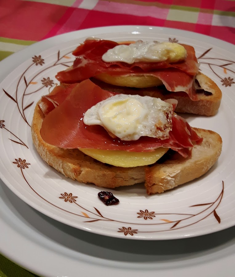 Los montaditos de Samira es bocado de dioses, a base de patata, jamón y huevo. Uhmmm!!