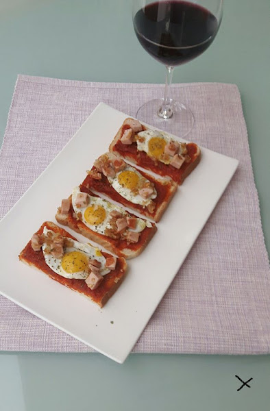 Tenía unos huevos de codorniz que estaban a punto de caducarse. Entonces vi estos montaditos de Mari y no dudé en probarlos. Chorizo de untar no tenía, pero si sobrasada, le vino también genial!!.