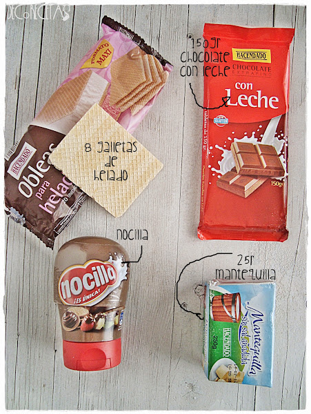 Lo primero que haremos será meter la nocilla unos segundos al microondas para que se vuelva un poco más ligera y que a la hora de esparcirla sobre las capas de obleas nos resulte más fácil