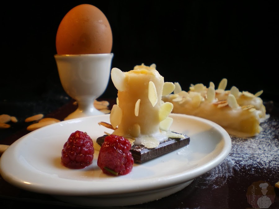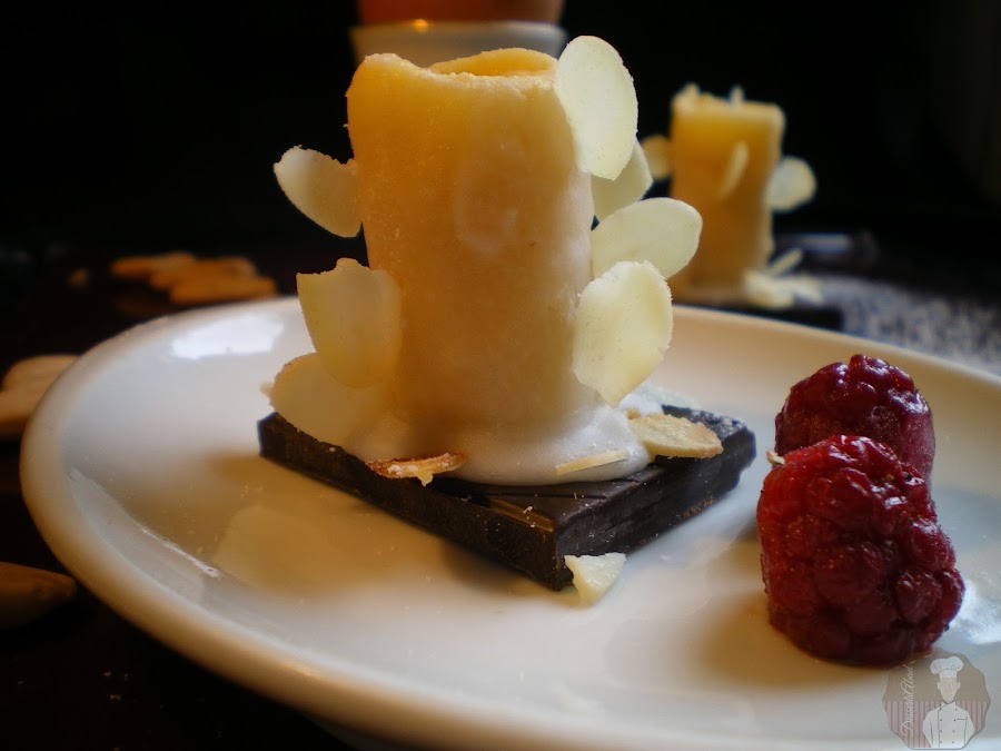 Otra forma de presentación muy original, es cortando a la mitad un hueso de santo y con el glaseado aún sin endurecer, ponerlo sobre una onza de chocolate negro como si fuera una vela. Os encantará el contraste que aporta el chocolate negro a este dulce.