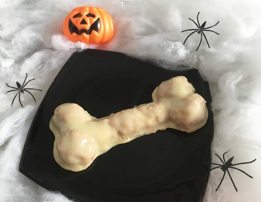 - Da forma de hueso a la mezcla, te saldrán varios dependiendo del tamaño que quieras hacer (nosotros hicimos uno grande, el de la foto, y varios más pequeños).