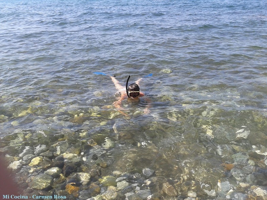Mis gafas, mi tubo y mis aletas están varadas junto a las algas, sobre las piedras de la pequeña bahía, me esperan ansiosas, como yo, por sumergirnos y sentir la mar en nuestra piel.