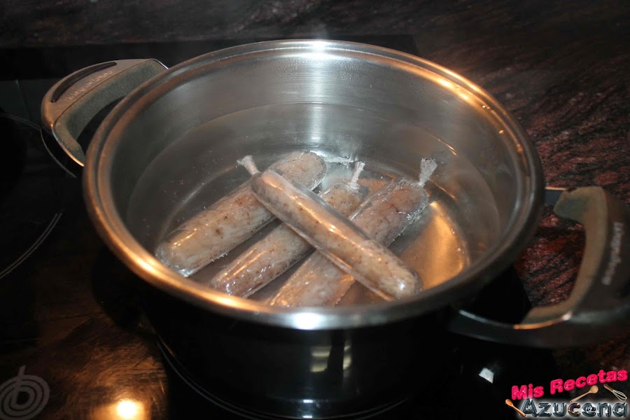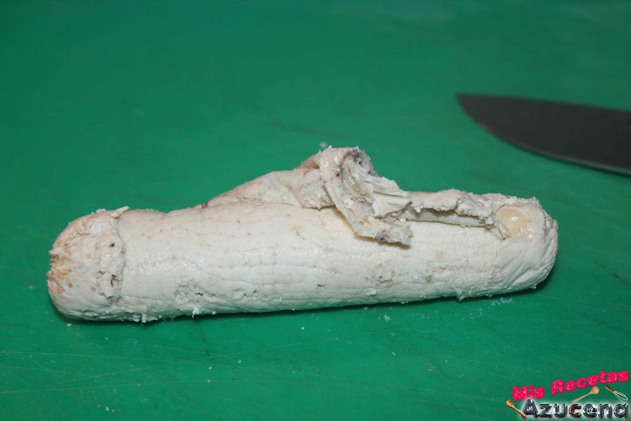 En este tiempo cogeremos las huevas les quitaremos el film y las pelaremos para cortarlas en rodajas no muy gruesas.