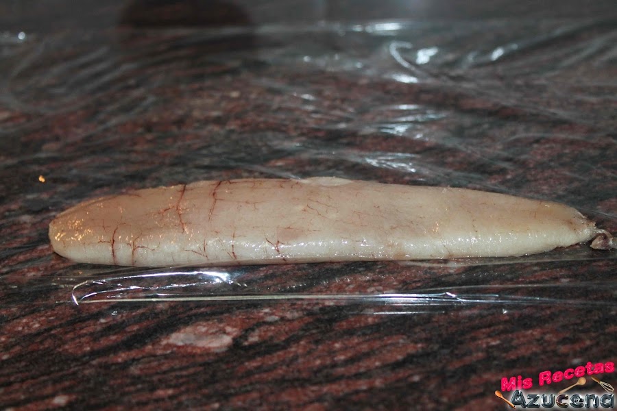 Lo primero que haremos en esta receta será cocer las huevas, cogemos la hueva y las cortaremos por la mitad para envolverlas con film transparente.