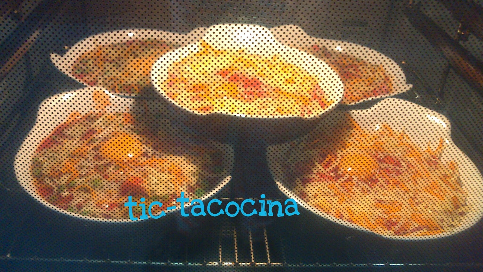 Preparar los cuencos individuales sobre la mesa. Poner es cada uno de ellos tres cucharadas soperas de guisantes (hervidos unos 5 minutos y escurridos), en los de mis hijos le he puesto un fondo de puré de patata de bolsa, que he preparado en el microondas con un vaso de leche que he llevado a ebullición, le he añadido un poco de sal y nuez moscada y 2 cucharadas soperas de puré deshidratado, esperar unos minutos y listo.