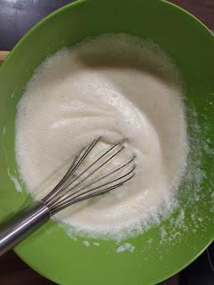 y vamos a mezclar suavemente con las varillas manuales para que no se nos bajen mucho, una vez mezclado todo,