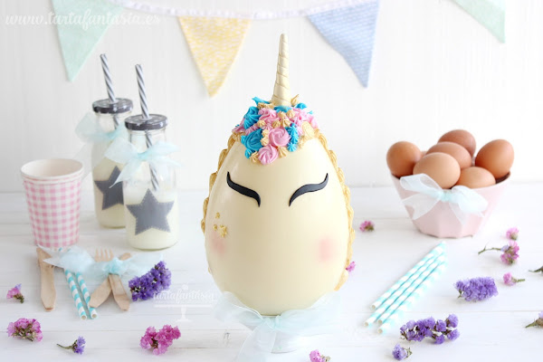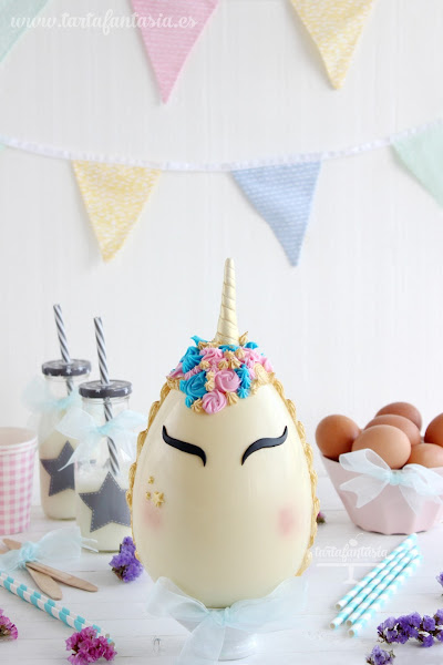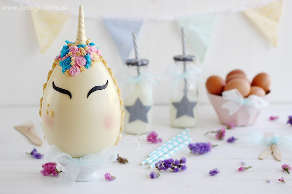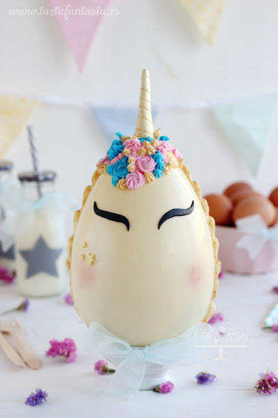Como os han gustado los huevos de pascua que hice de chocolate negro, he vuelto ha grabar un tutorial pero esta vez con chocolate blanco, y como los unicornios están muy de moda he pensado que la decoración perfecta para este huevo blanco era de unicornio.