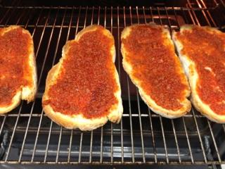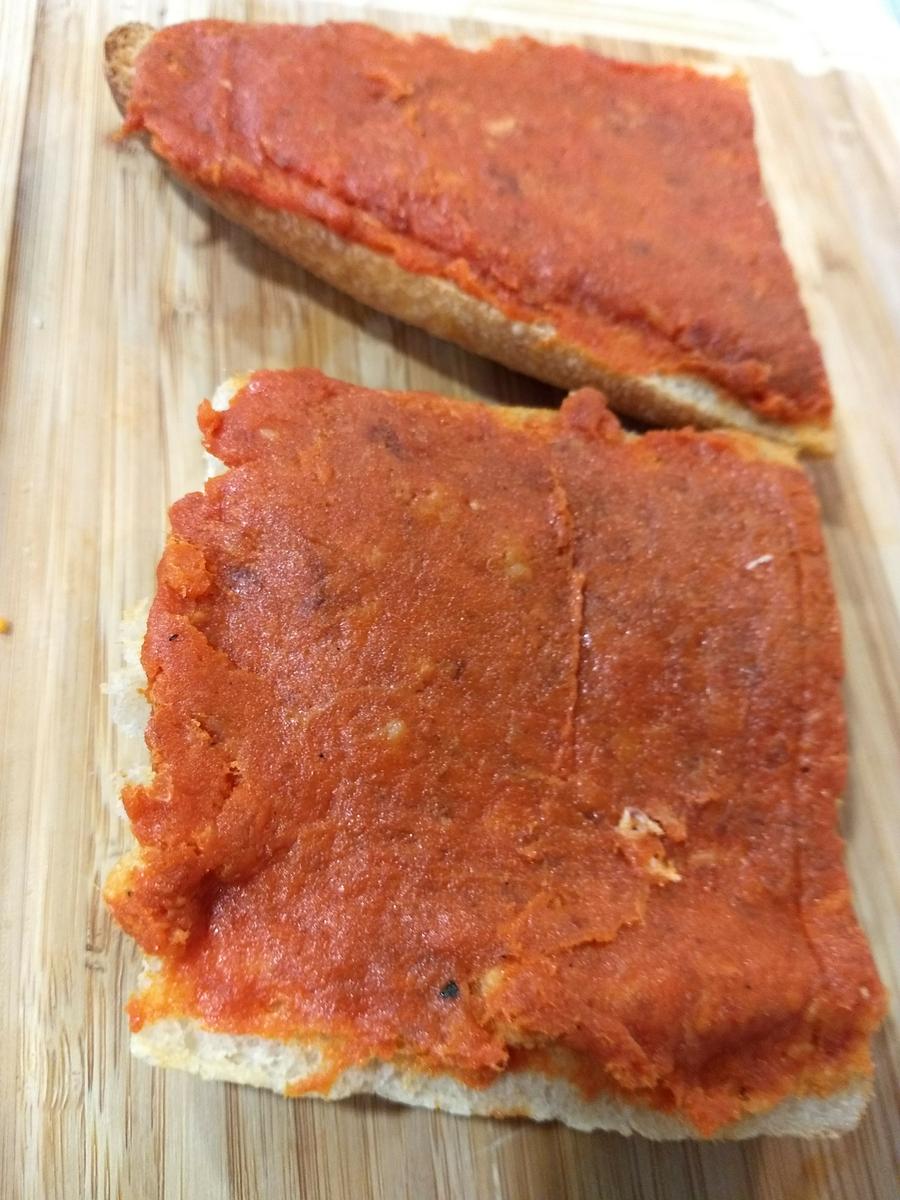 Si el número de rebanadas o trozos de pan es mayor podéis gratinar en el horno hasta que se funda la sobrasada.