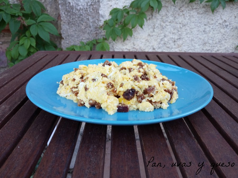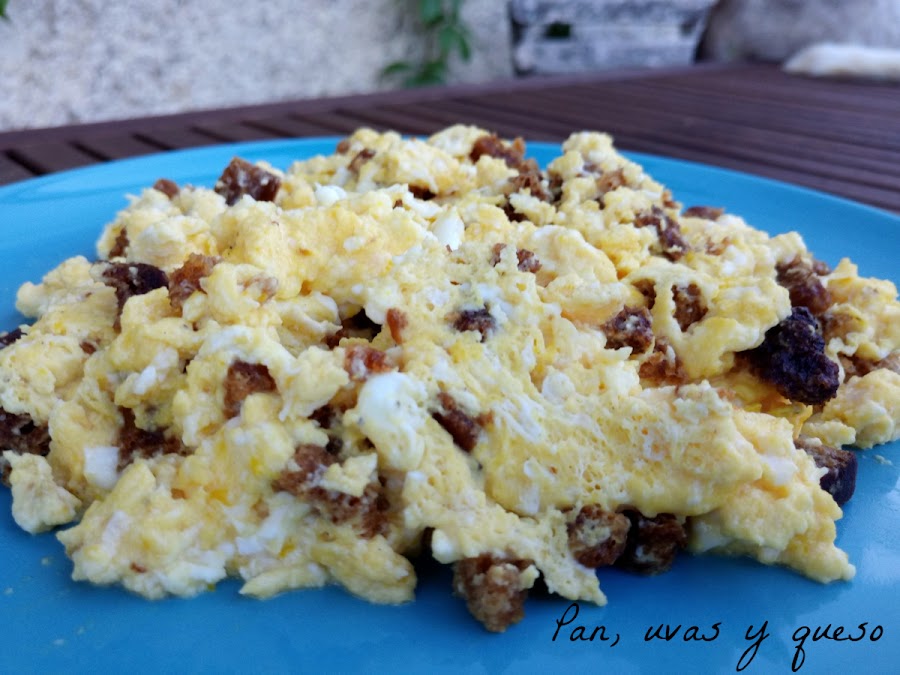 Como podéis ver por los ingredientes, estos huevos revueltos son un plato muy barato, de la cocina de otras épocas que era menos rica (en el sentido monetario solamente) pero siempre conseguían preparar platos muy sabrosos.