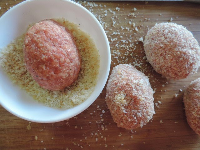 Ni los había probado,ni conocía este plato típico de la cocina escocesa hasta el momento.En un principio no me convenció mucho,estamos en plena operación bikini y no nos podemos permitir los rebozados ni las frituras,pero llego diciendo que había versiones donde los huevos iban horneados en vez de fritos,esto si que me gusto más,así que allá me fui a buscar la receta en cuestión.