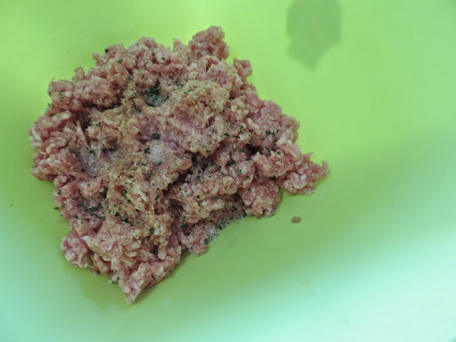 Ponemos la carne,especias,aceite y la leche en un bol,mezclamos todo muy bien.