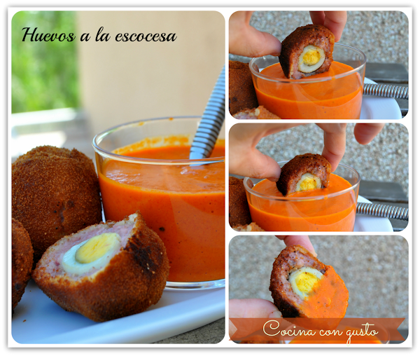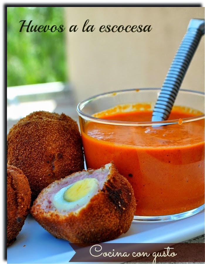 Yo los he hecho con huevos de codorniz para que no fueran tan grandes, y aún así han salido bastante grandecitos. Para que la cosa no fuera tan fácil, teníamos que acompañarlos con una salsita y me he decantado por una Salsa de Pimiento del Piquillo, que le ha ido al pelo.