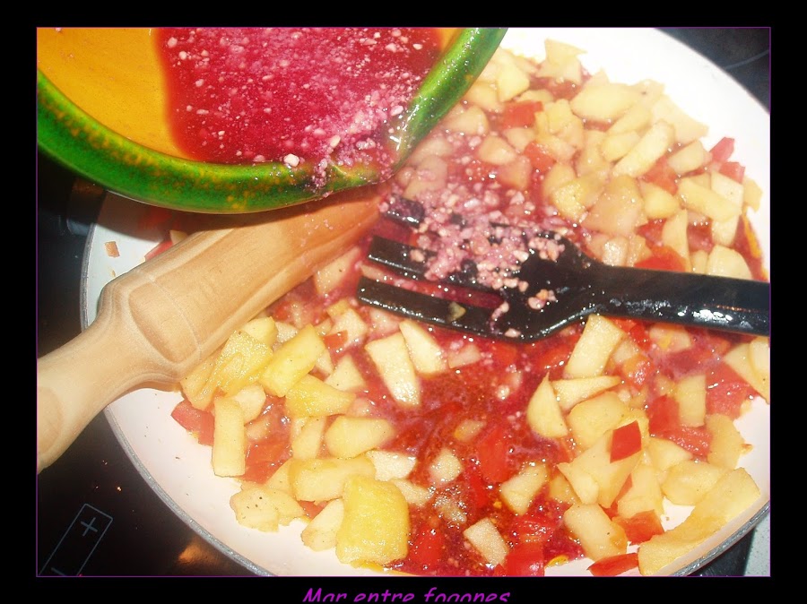 Ponemos el pimiento partido en trocitos ( en mi caso daditos).