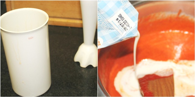 En el vaso de la batidora ponemos los pimientos del piquillo con la cebolla pochada (en mi caso utilicé un pimiento del piquillo que ya viene con la cebolla), y lo batimos hasta que quede un puré.