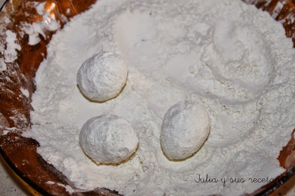 Cuando se enfrien los huevos los pelamos y los rebozamos en harina.