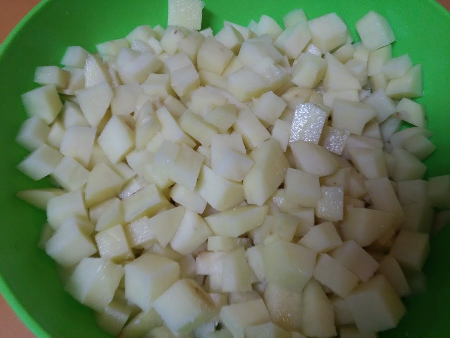 Cortamos a dados las patatas y las freímos. Reservamos.