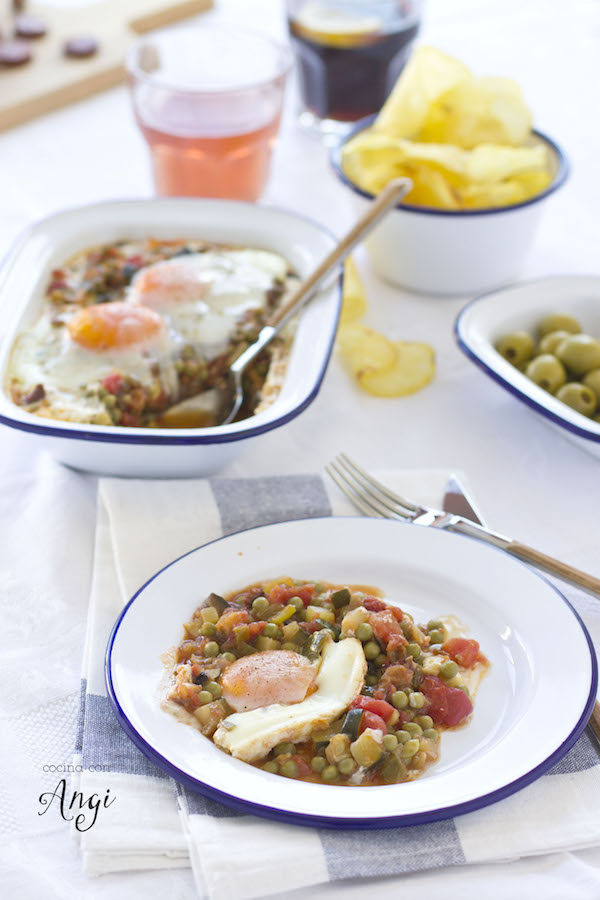 Sin duda alguna ésta es una versión libre de los huevos a la flamenca, de hecho los podríamos llamar huevos con verduras. Pero bueno, el primer nombre parece que venda más, es más comercial, ya que lleva la palabra flamenca. Y hemos de admitir que nada supera a la flamenca, si no que se lo digan a los emojis de WhatsApp. Te pueden poner una cara sonriendo, otra partiéndose de risa, guirnaldas, fuegos artificiales... pero como aparezca la flamenca eso es sinónimo de fiesta segura, de alegría suprema.