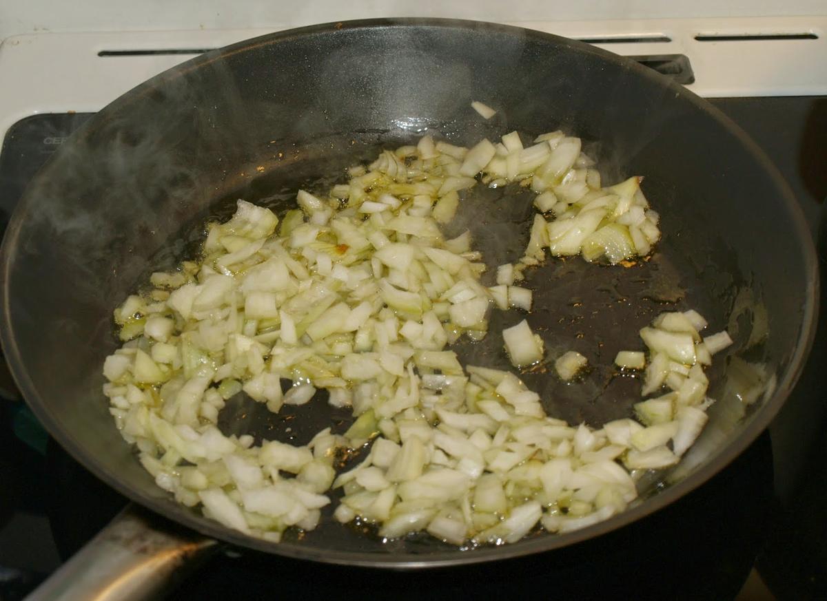 - Empezamos picando la cebolla y dorándola en una sartén con aceite de oliva.