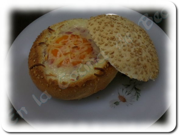 No puede ser más facilito. Abrimos los panecillos por arriba, quitando una tapita, no mucho. Los vaciamos quitando la miga, para que nos queden cuenquitos que iremos rellenando con un poco de queso rallado, jamón york en trocititos, un chorrito de tomate frito, el huevo cascado encima con un pelín de sal y otro poco de queso rallado.