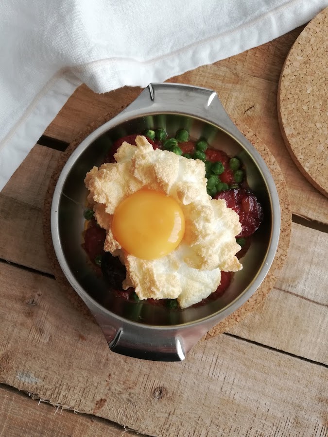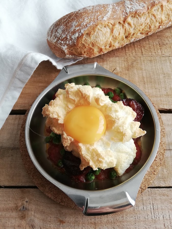 Yo he hecho la receta como la hacía mi madre, aunque le he dado un giro para conseguir que la yema no se haga y podamos untar el pan! Eso sí, los huevos son de corral de gallinas felices que campan por el campo y no comen pienso!