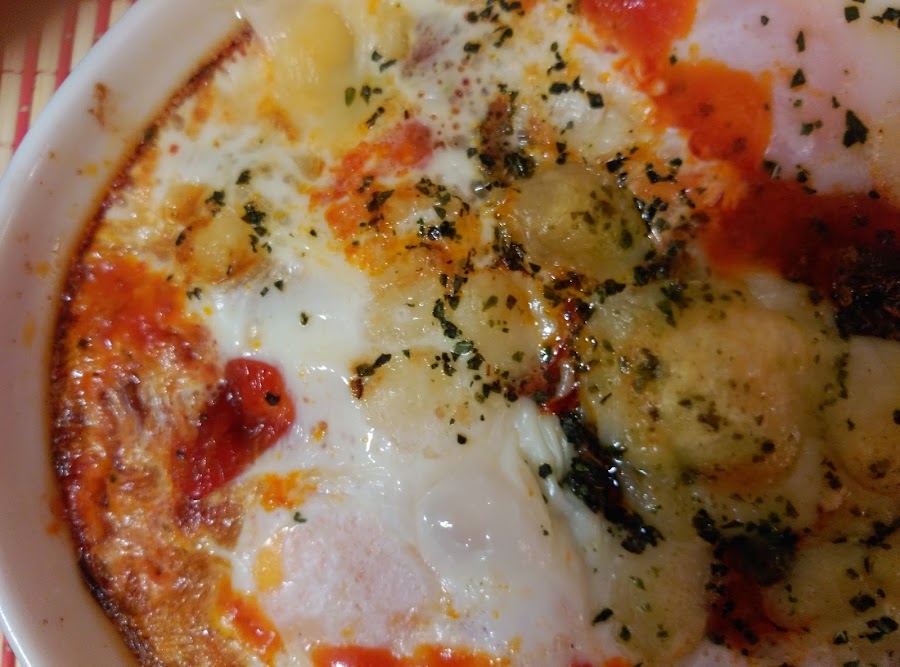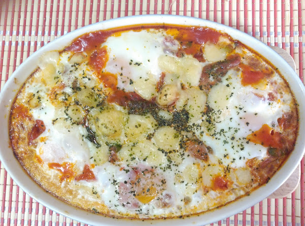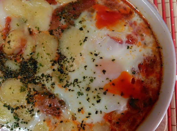 Introduce en el horno a 200º durante 15 minutos o cuando el huevo esté al punto que te gusta. Hay a quien le gusta mas crudo (para mojar) o más hecho. Así que el tiempo dependerá del gusto de cada cual.
