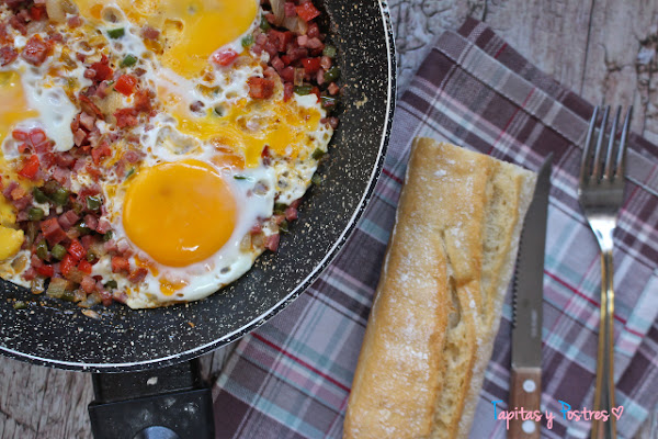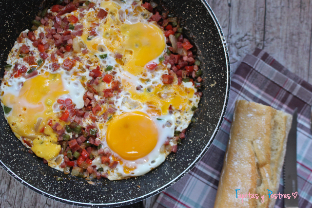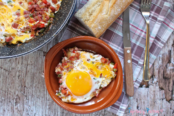 Al final tuve que decidirme por una y fueron estos huevos al plato. Un plato perfecto para disfrutarlo en familia, sencillo, rápido y económico. Los huevos al plato son una receta de las tradicionales que habitualmente se prepara en cazuela de barro y horno. Yo he seguido las indicaciones de la receta de Rosa y los he preparado en sartén. El resultado final es igual de rico.