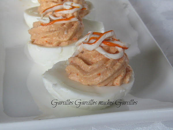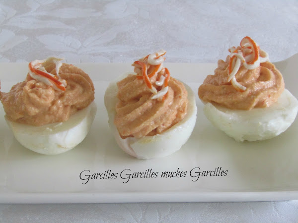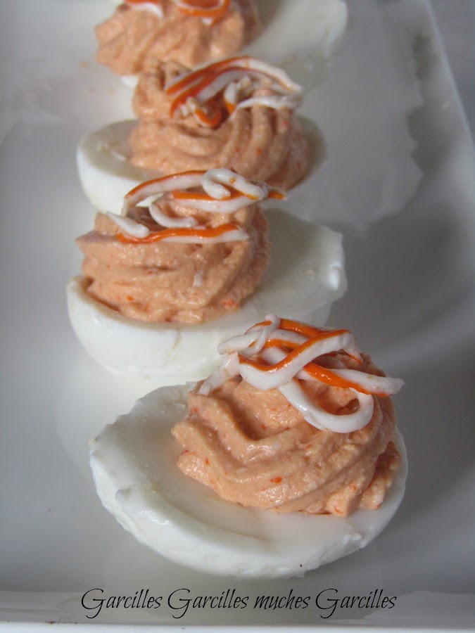 La bolsas del surimi rallado, son de 185gr asi que con lo que sobra, se adornan los güevos perfectamente