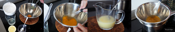 Hay que tener cuidado con la temperatura, ya que si es alta se puede cocer el huevo y no ligará la salsa. En el proceso de batido y emulsión podemos ir retirando el bol del cazo para evitar que se caliente en exceso.