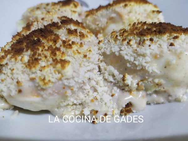 Queso en polvoCocemos los huevos en agua con sal unos 10 minutos, pelamos y cortamos por la mitad.