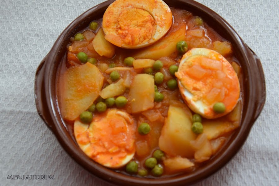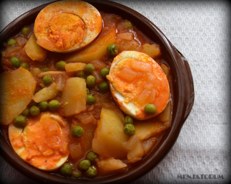 Una manera fácil para que aprovechar el excedente de huevos de nuestras gallinas siempre ha sido en casa preparar estos huevos con guisantes y patatas.Ya era un plato muy común en la cocina de mi madre, por lo que la receta la he heredado de ella.