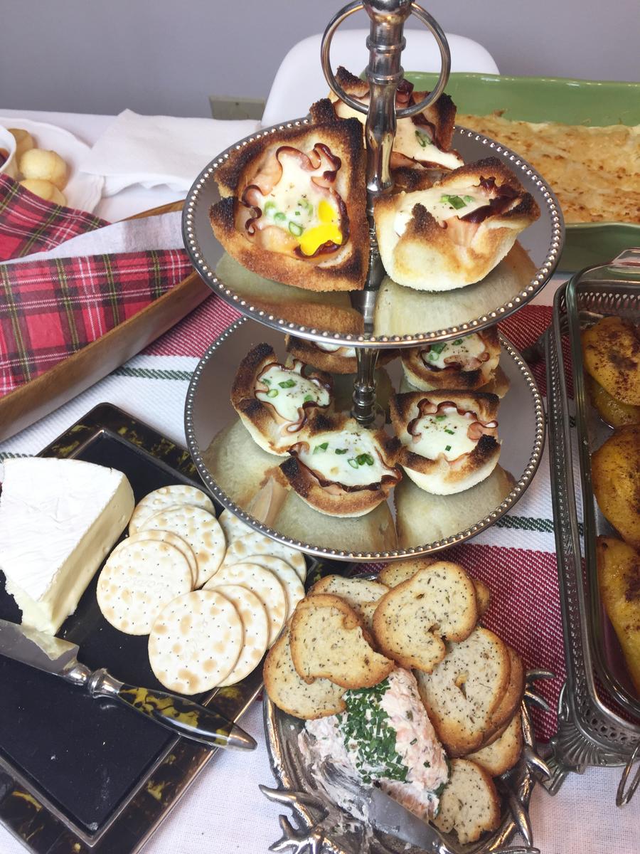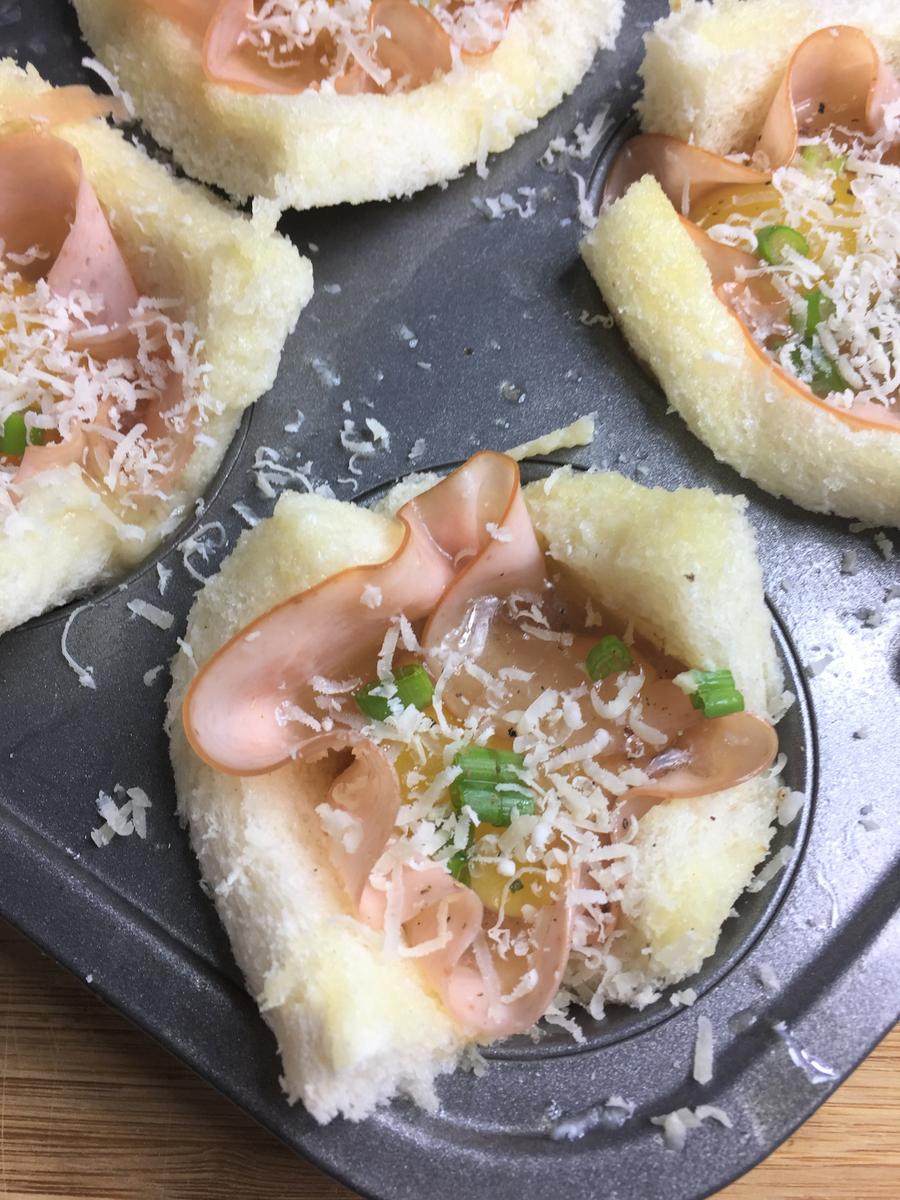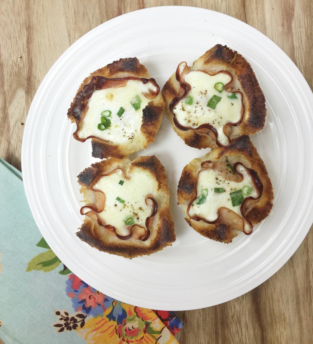 El día de Navidad invité a mi familia a un “brunch” en casa. Esta receta es muy conveniente porque me permitió servir huevos con jamón y tostadas de pan para muchas personas sin pasar mucho trabajo. ¡Se ven lindos y son ricos!