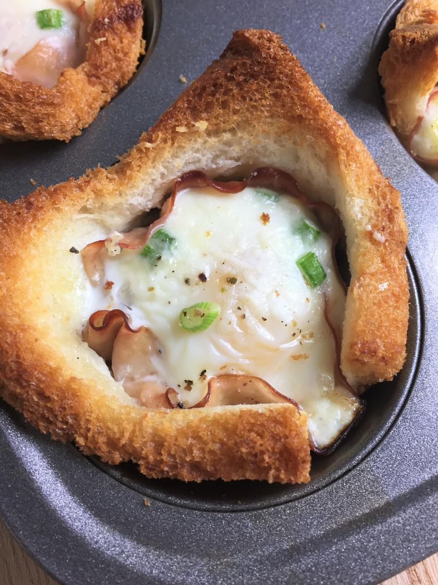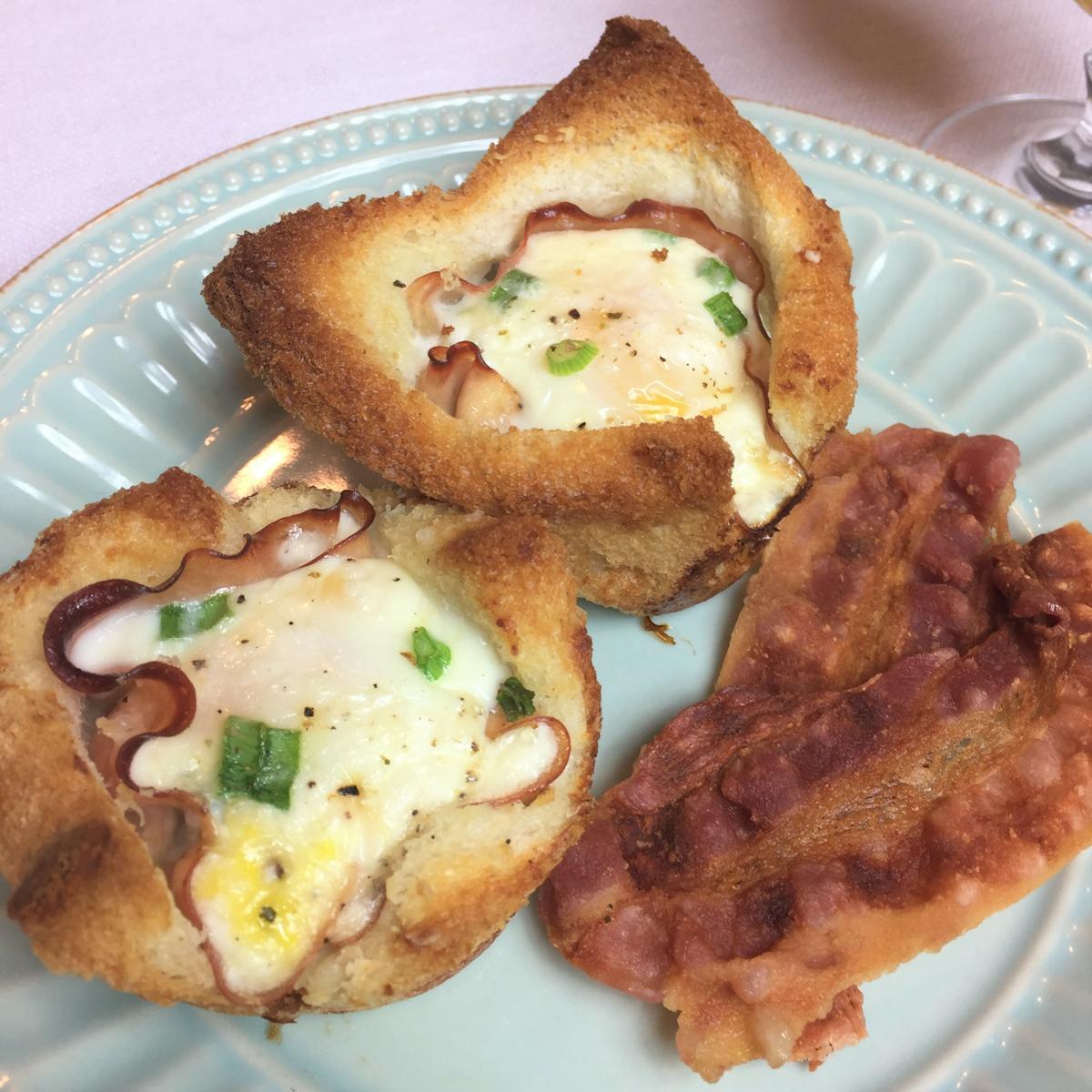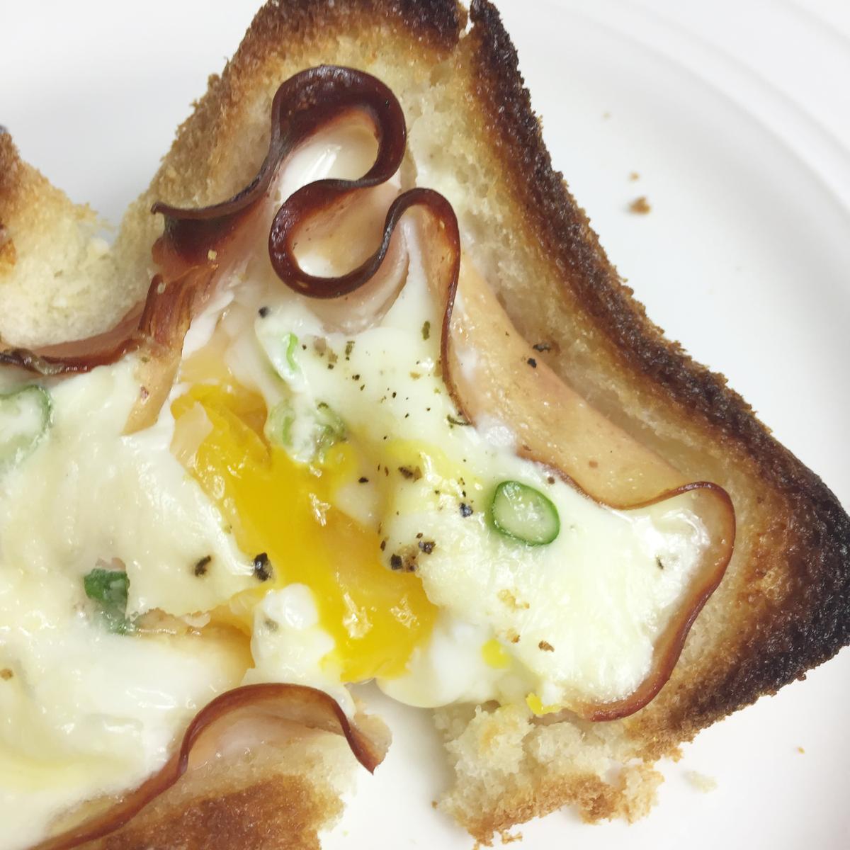 El día de Navidad invité a mi familia a un “brunch” en casa. Esta receta es muy conveniente porque me permitió servir huevos con jamón y tostadas de pan para muchas personas sin pasar mucho trabajo. ¡Se ven lindos y son ricos!