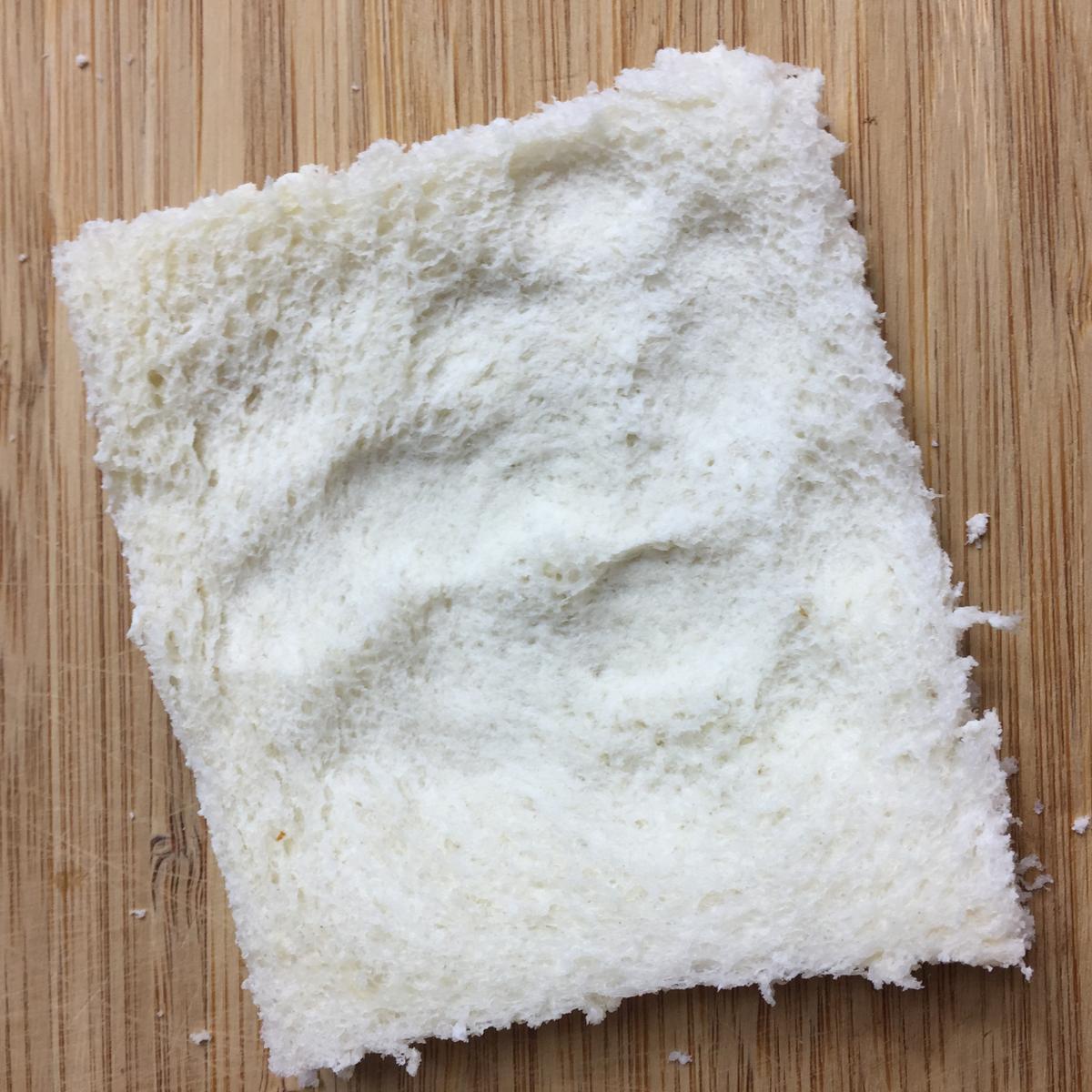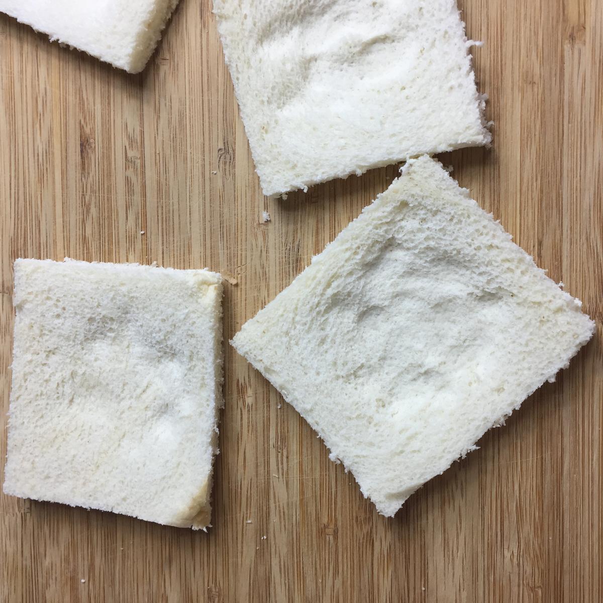 Aplasta con los dedos el centro de las rebanadas de pan (sin bordes).