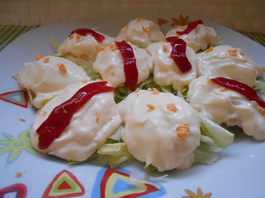 pues si tal cual, todo un clasico los huevos con mayonesa.