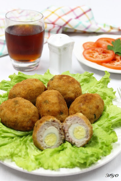 5. Finalmente, ponemos a fuego moderado una sartén con abundante aceite y freímos nuestros huevos a la escocesa hasta que estén bien dorados y hechos.
