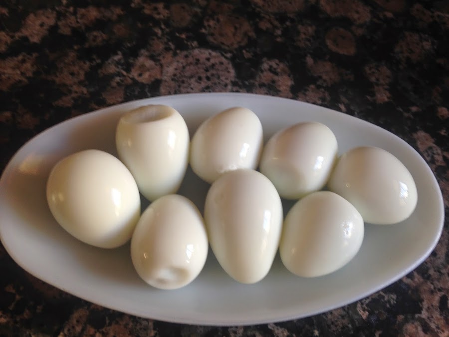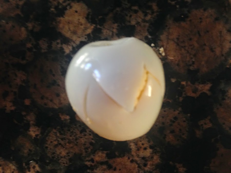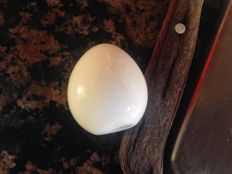 Cortaremos la parte ovalada del huevo.