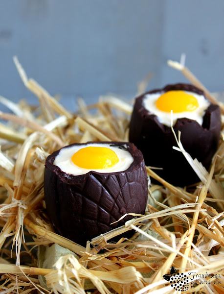 - COmo veis en las fotos mis huevos tienen una capa de chocolate muy gruesa, lo tuve muy fácil los dejé a temperatura ambiente, el chocolate no estaba duro y pude cortar sin problemas con un cuchillo afilado y de punta la parte superior