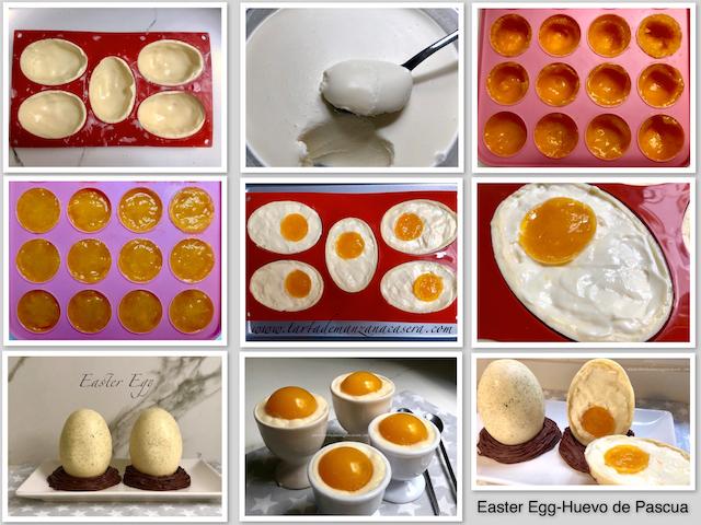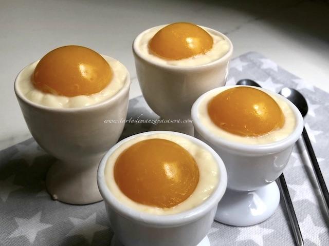 La receta original utiliza pulpa de mango y añade azúcar, yo he utilizado mango en almíbar así que no he añadido azúcar extra. Al triturarlo y verterlo veréis que queda alguna hebra, es normal, el mango tiene hebras. En el caso de la compota de mango del interior de la esfera sólo añadí un poco de glucosa, obvié de nuevo el azúcar. La receta original utiliza pectina pero es difícil de conseguir y cara, se puede hacer casera pero es laborioso. Opté por utilizar agar-agar que también gelatiniza, es barato, viene en prácticos sobres y se puede encontrar la marca Vahiné en supermercados. Según la receta el cremoso de vainilla hay que dejarlo enfriar en la nevera durante 5h. Pero si queréis que la superficie quede más lisa al rellenar las mitades de huevo de chocolate yo sólo esperaría a que se enfriara a temperatura ambiente y lo colocaría directamente en las mitades de huevo. Después añadís las semiesferas y a la nevera. A continuación os dejo el paso a paso. Si queréis ver el vídeo del corte del huevo pasaros por mi cuenta de Instagram, está en destacados.