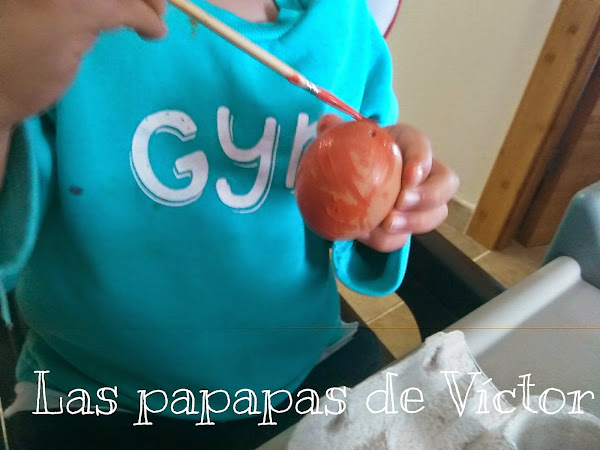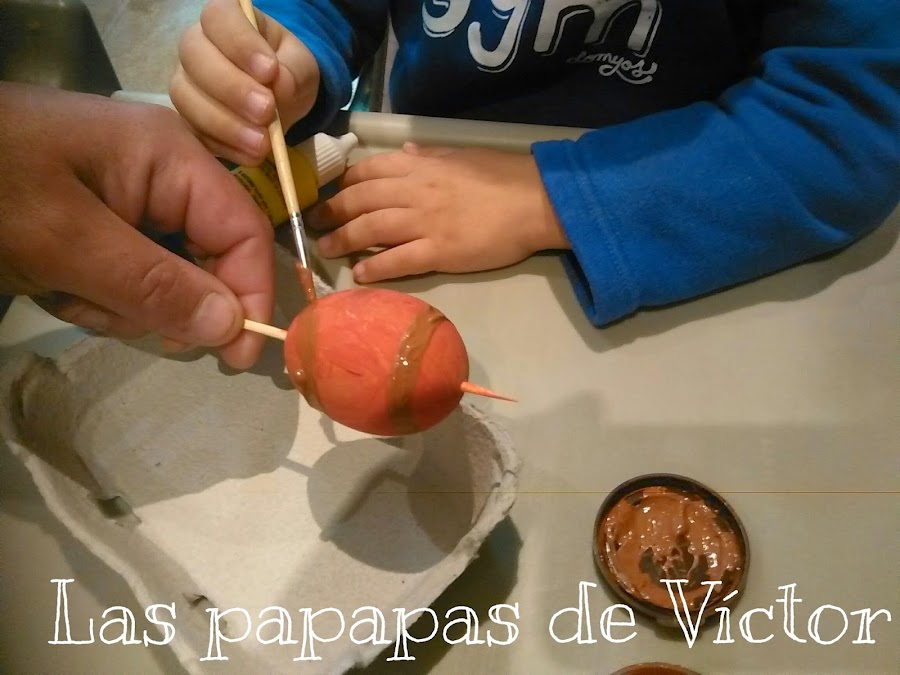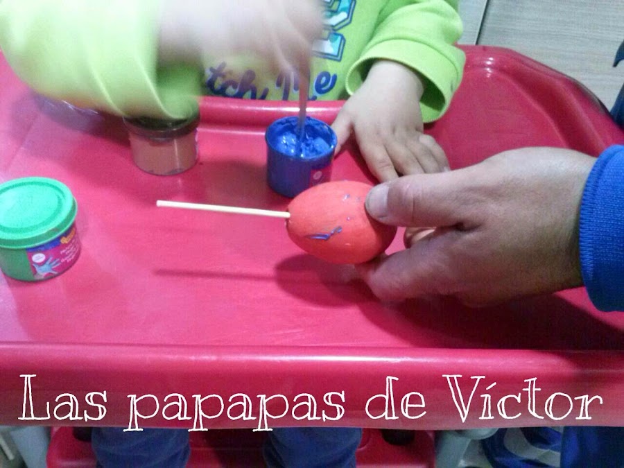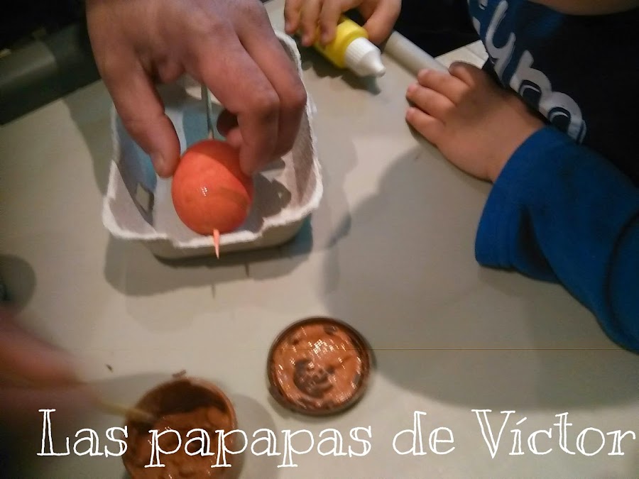 A la que lo pintemos de rojo.. Que se me olvidaba traspasamos el huevo con una brocheta y dejamos secar.