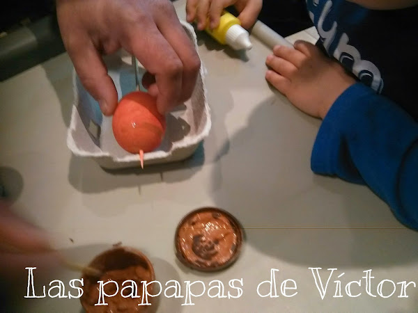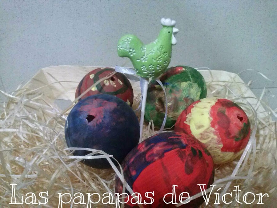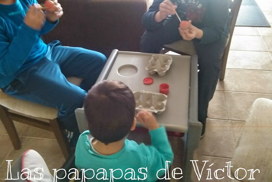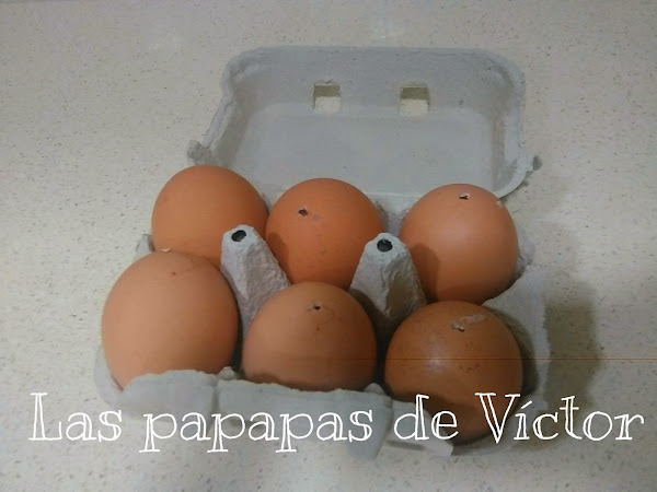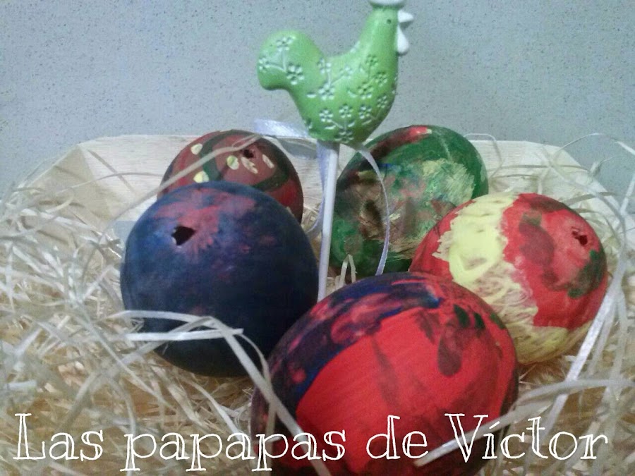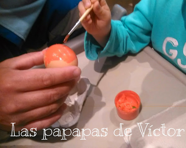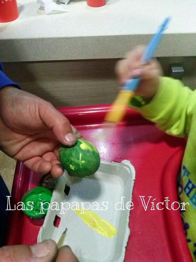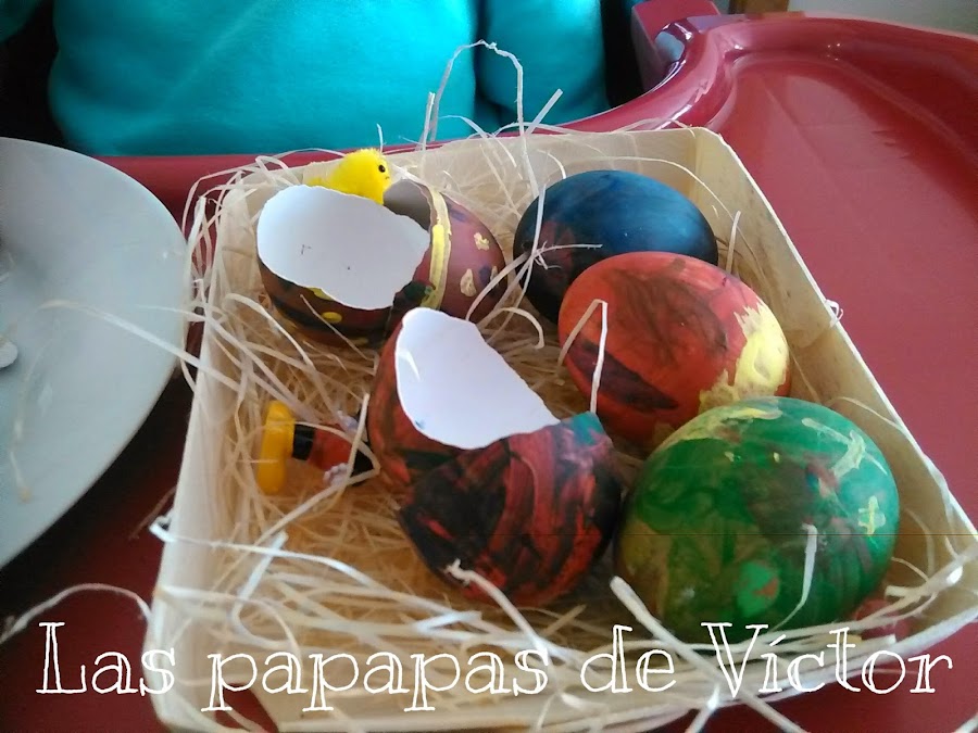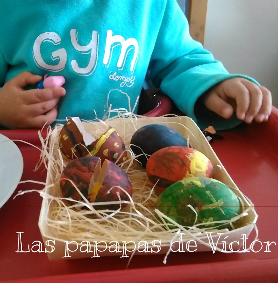 Los e echo de huevos de verdad y la verdad que para ser la primera vez no estan nada mal y aparte mi peque colaboró bastante incluso cuando se lo abrimos y le dijimos que "había algo dentro"